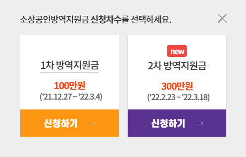 2022년 1월 추가 예산으로 국회에서 통과되어 소상공인들에게 2차 방역지원금을 지원합니다.