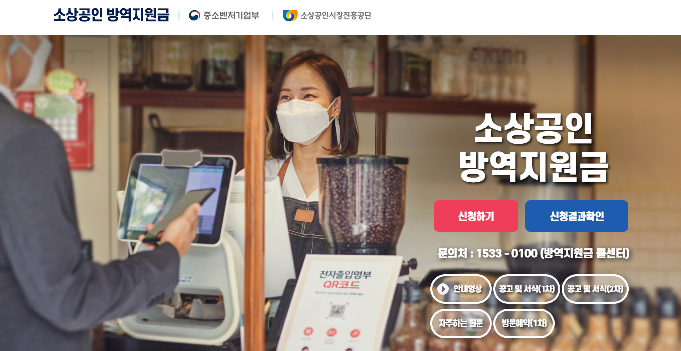 소상공인 방역지원금 홈페이에서